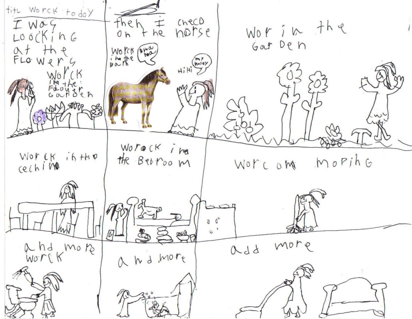Here’s a story (title: “Worck Today”) written yesterday by my seven year-old: