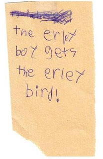 When I got up this morning (early, of course), I found a note taped to the handrail of our staircase: